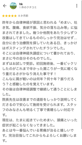 自律神経失調症で悩んでいた方でチラシを見て当院に来てくださいました。
